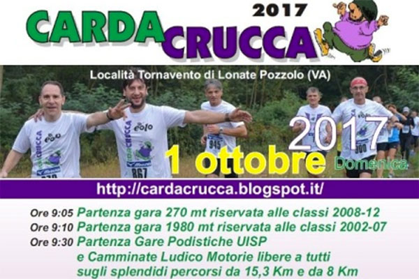 Torna domenica 1 ottobre a Tornavento di Lonate Pozzolo (Va) la CardaCrucca, gara podistica organizzata dalla Cardatletica ASD di Cardano al Campo con il supporto della Bcc di Busto Garolfo e Buguggiate. Una corsa adatta a tutti che attraversa un territorio particolarmente suggestivo quale via Gaggio, una sorta di museo all’aperto lungo quelle che erano le piste di atterraggio create dai tedeschi durante il secondo conflitto mondiale, e alcune aree naturali del Parco del Ticino. Il tutto con un arrivo spettacolare nella piazzetta di Tornavento, un vero e proprio balcone affacciato sulla Valle del Ticino, dopo aver costeggiato il canale Villoresi. Quattro i percorsi previsti: uno da 270 metri per i bambini, uno da 1.980 metri per i ragazzi e i “classici” da 8 km oppure da 15,3 km.