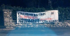 pressi di Villa Letizia, di uno striscione recante il messaggio: “ 1000 ospiti, oltre il 95% le bocciature alla richiesta d’asilo…Tormentati?