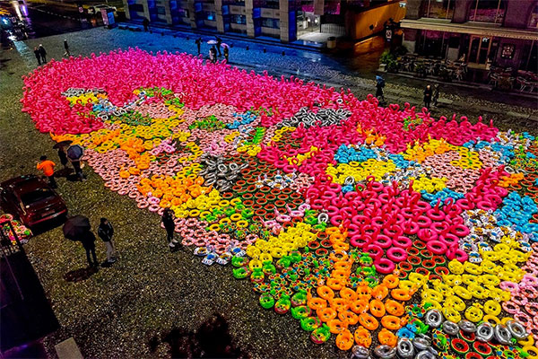 Il commento dell’artista, dispiaciuto e basito per quanto accaduto “Le indicazioni erano altre ma è chiaro che alla gente non interessa molto. Vedo persone cariche di salvagente e cerco di fermarle, di farle ragionare. Ho dovuto ritransennare una parte della piazza per isolare almeno i 300 salvagente ‘benefici’. È incredibile, davvero”
